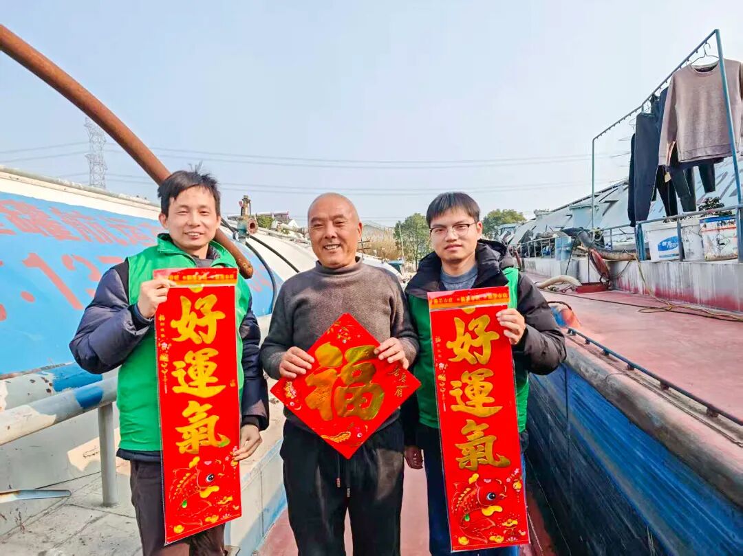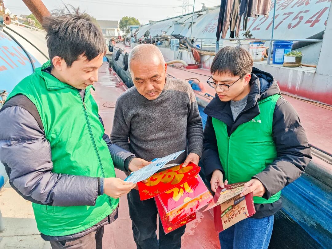活动现场,志愿者们将精心准备的“诚信福袋”送到船民手中,红彤彤的春联、寓意吉祥的“福”字,传递着浓浓的年味,而随袋附赠的《防范电信诈骗指南》和信用出行宣传折页,则用通俗易懂的语言,帮助船民识别风险、了解政策、提升守信意识。
